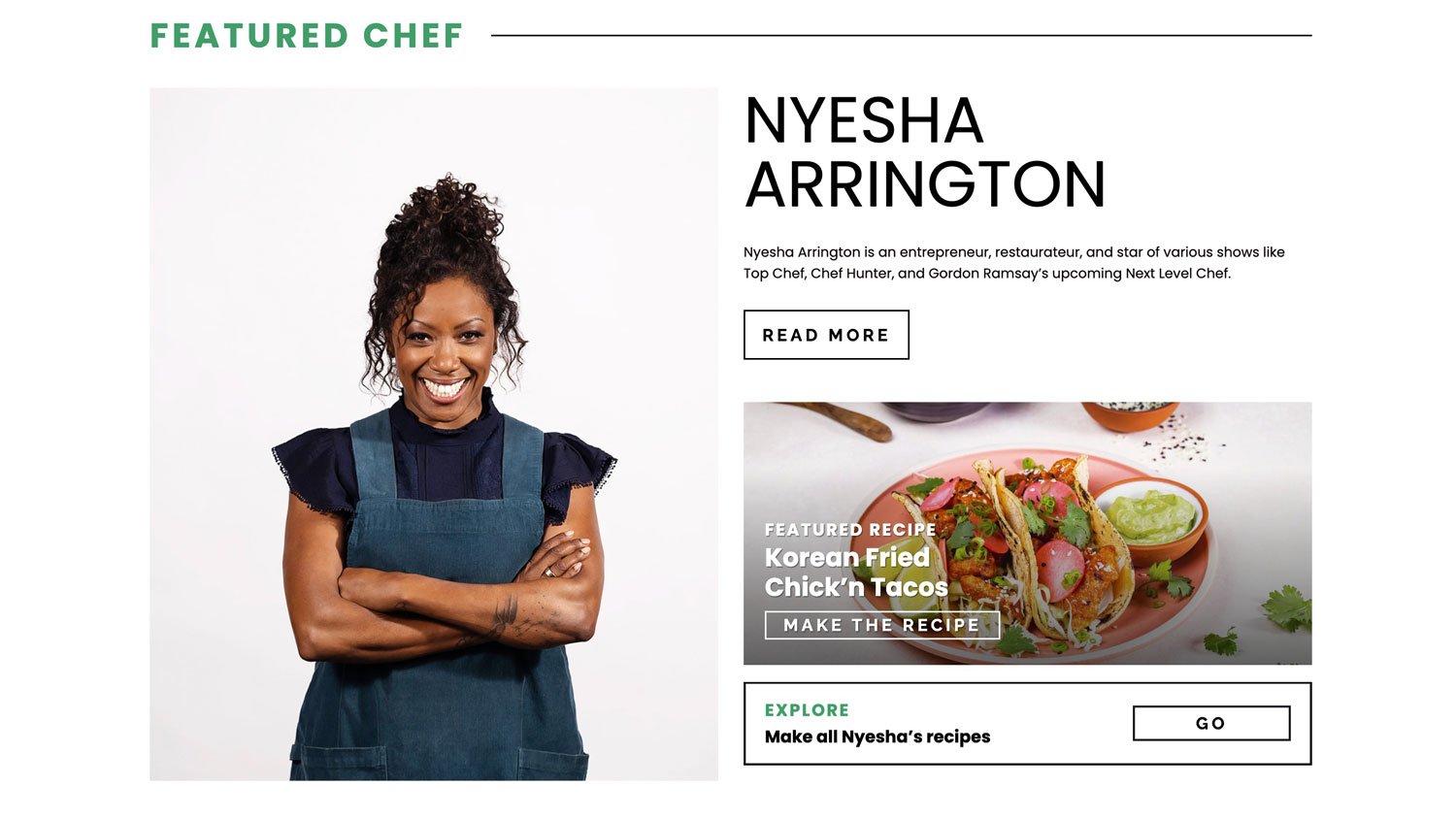 We researched a wide array of chefs within our 4 key markets, and finalized partnerships with 10 chef ambassadors. They comprised a diverse group of some of the most inspiring names in plant-based cooking today.